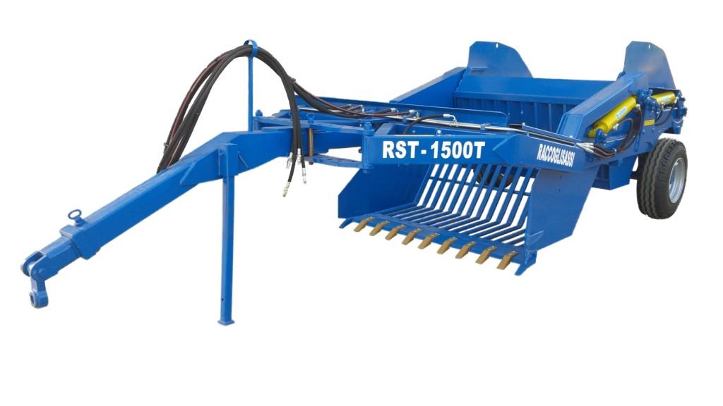 Raccoglisassi La Raccogli sassi RST è una macchina realizzata per un efficace lavoro di bonifica di qualsiasi tipo di terreno. La raccolta dei sassi viene eseguita mediante   trascinamento. E' un attrezzo che funziona a traino ed è adatto a trattrici con potenza di 80-140 HP   ORIGINALITA' Il telaio è strutturato in modo da avere una disposizione delle masse, a collegamento avvenuto, che: durante la lavorazione, non genera fenomeni di impuntamento e di slittamento nella trattrice garantendone la massima aderenza al suolo e il minimo sforzo di trazione facendo diminuire notevolmente il consumo di combustibile, e durante le fasi di manovra mantiene un ottimo bilanciamento dei pesi che non incide sulla barra del trattore consentendone costantemente la perfetta aderenza al suolo. Il sistema di ribaltamento del cassone di raccolta e del cassone di scarico è di tipo idraulico. Il cassone di raccolta quando è pieno, mediante ribaltamento idraulico effettua il passaggio nel  contenitore di scarico. Il contenitore di scarico verrà svuotato, sempre idraulicamente, a riempimento ultimato, in qualsiasi luogo scelto. La portata è di 1,5 metri cubi. VANTAGGI DELLA MACCHINA RACCOGLISASSI RST-1500T "DI RAIMONDO" Elevata sicurezza per l'operatore offerta dalla struttura dell'attrezzo progettata per prevenire qualunque rischio e pericolo durante l'uso. Massimo comfort per l'operatore durante l'uso offerto dall'ottimo bilanciamento delle masse che evita slittamenti delle ruote e impennate della trattrice rendendo la guida più gradevole. Alto risparmio energetico offerto dall'eccellente telaio che permette all'attrezzo di assorbire meno potenza e alla trattrice di consumare meno combustibile. Estrema semplicità di utilizzo dell'attrezzo offerta dal sistema di ribaltamento idraulico di facile applicazione. Grande riduzione dei costi di manutenzione offerti dall'elevata affidabilità della struttura dell'attrezzo costruito con acciai ad alta resistenza meccanica. Ottimo investimento valido e sicuro grazie alle caratteristiche dell'attrezzo che ne garantiscono una lunga durata nel tempo e un'ottima efficacia nella lavorazione. Prova sul campo Provata su terreni che presentano un elevato numero di sassi. Si è riscontrata una fluidità di scorrimento del trattore e un ottimo lavoro di bonifica della terra con un eccellente risultato finale, ottenuto in un brevissimo tempo di lavorazione, che mostrava un terreno ben livellato e con uno scarsissimo numero di pietre.